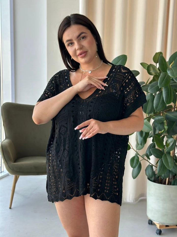 Мереживна туніка – легкість і спокуса в одному образі! Ідеально доповнить купальник, додаючи загадковості та витонченості. Будь чарівною на відпочинку!