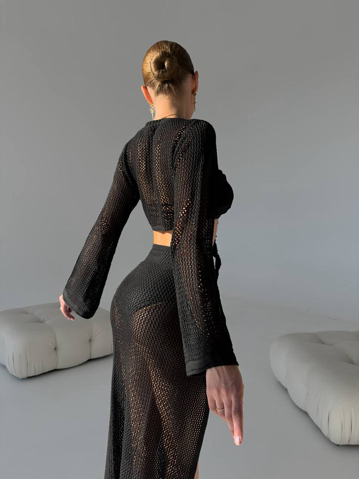 Ідеальний варіант для пляжного образу, який не залишиться непоміченим - вʼязаний костюм топ + спідниця🍹🏝️