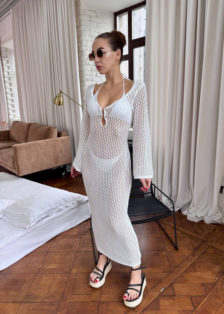 Довга ажурна туніка з якісної в’язки. Підійде для літа, пляжу, фотосесій або стильного відпочинку.